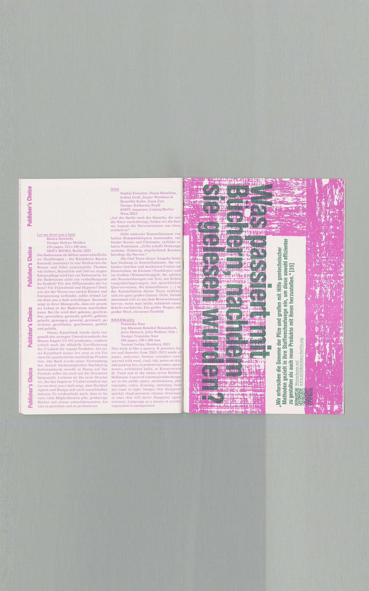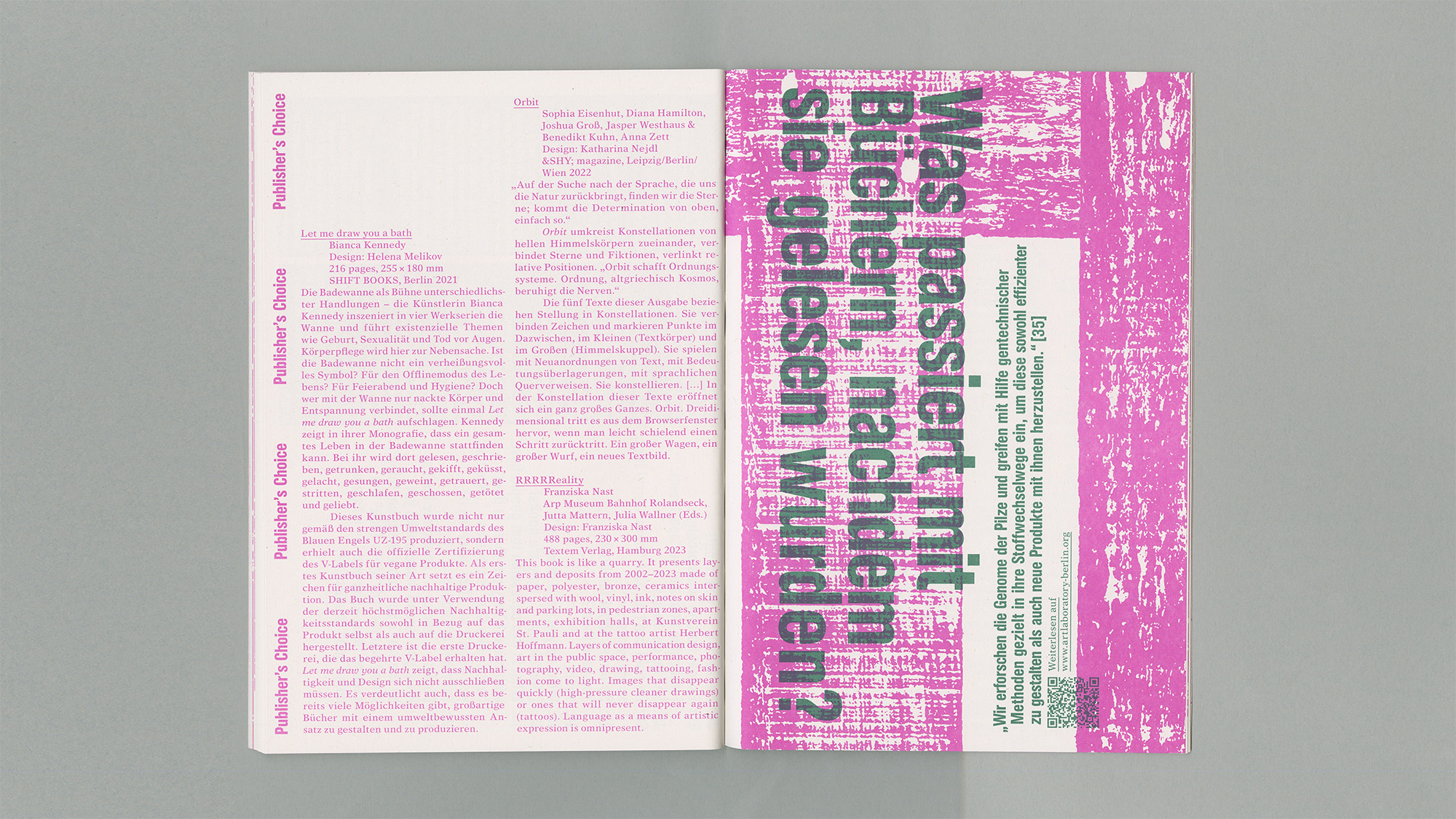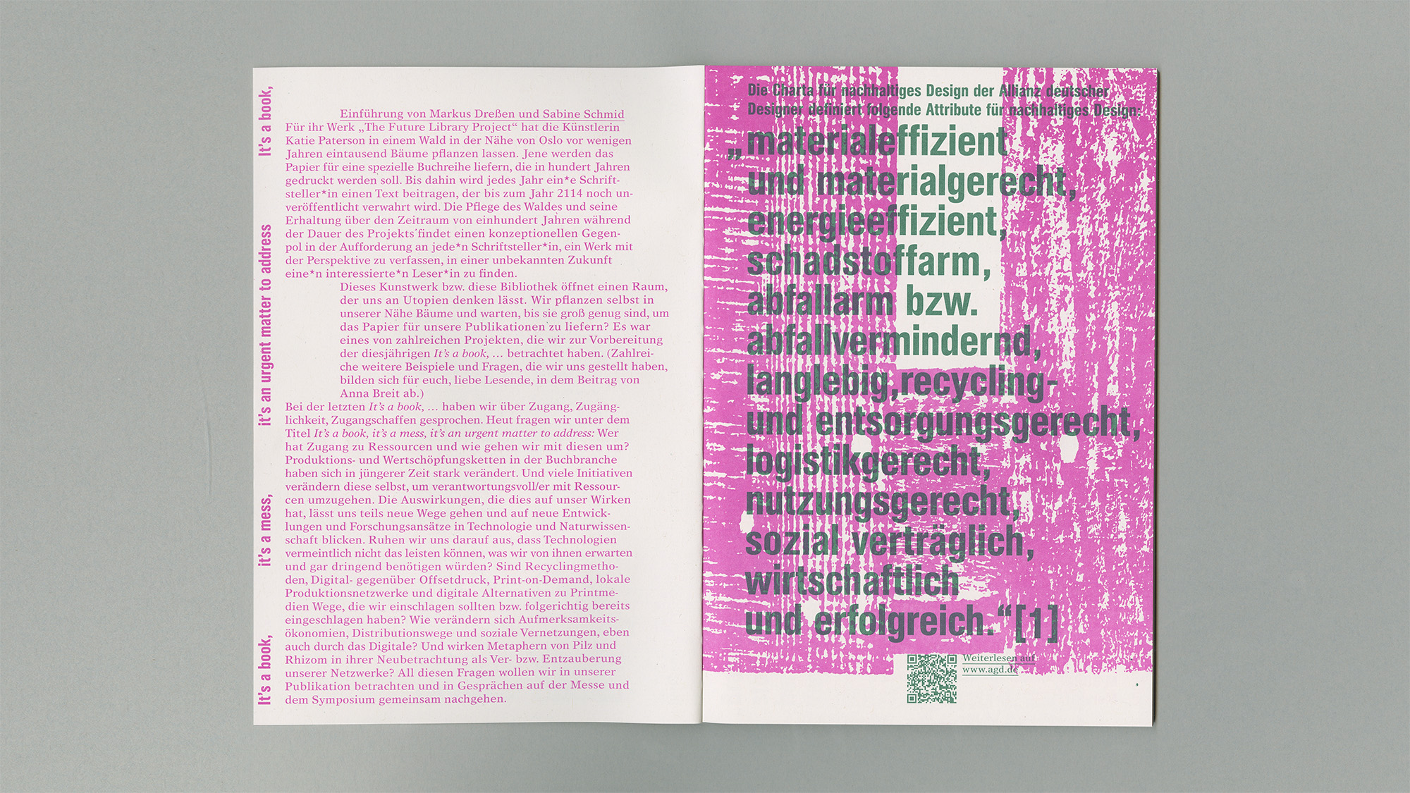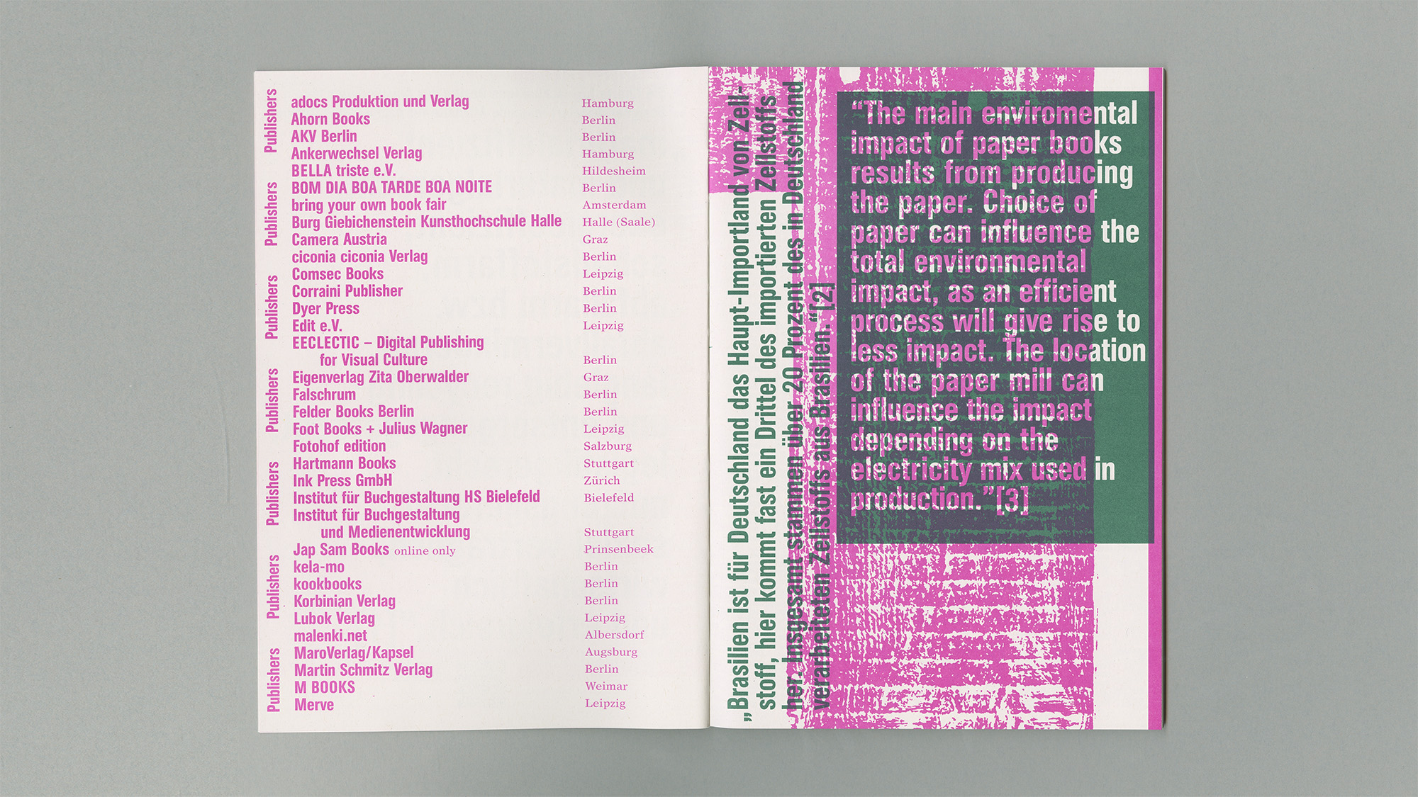For Its a book 2023, we looked at the book as a material good. Questions of production, logistics, resources, efficiency and waste were also posed for the design of the fair.